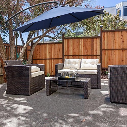 The Cantilever Offset Umbrella offers a modern vibe with its beige canopy set against black powder-coated ribs. Thanks to its 360-degree rotating design, you can direct the shade wherever you need to beat the heat. And given that the canopy extends away from the frame, you will enjoy the flexibility of shading a table or a group of chairs.